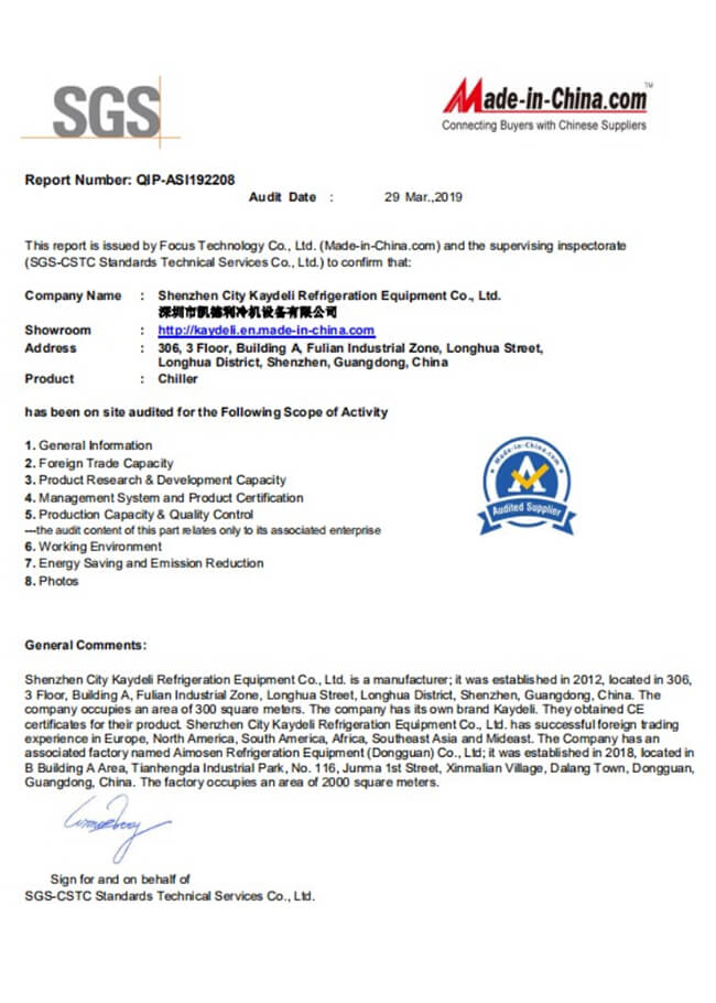 The US Kaydeli Group was established in Texas in 1966, USA. Was set up the HK production base in 1996 named Kaydeli Group (HK) Co., Ltd. With the rapid development, Kaydeli move to Shenzhen Guangdong province and set up Shenzhen Kaydeli Refrigeration Equipment Co., Ltd in 2012. (hereinafter referred to as Kaydeli).