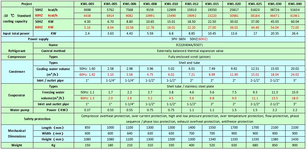 This water-cooled cryocooler is engineered for high efficiency, stable performance, and reliable operation across a wide range of industrial applications. The unit is available with R22, R404A, or R507 refrigerants, allowing users to select the optimal cold media for their specific working conditions.